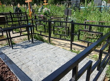 Перед нами стандартная могила, где уже захоронено два человека. Мы оставляем без изменения только ограду, ее мы только надежно зацементируем и покрасим. Все остальное мы изготовим и установим.